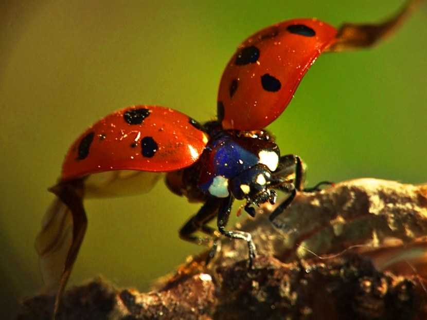 Божья коровка имеет крылышки и является летающим насекомым, среди них есть такие породы, которые называются «перелетными». Они как птицы, могут улетать зимовать подальше от места своего кормления. Но естественно и там они впадают в спячку, только огромными группами, бывает даже по несколько тонн весом.