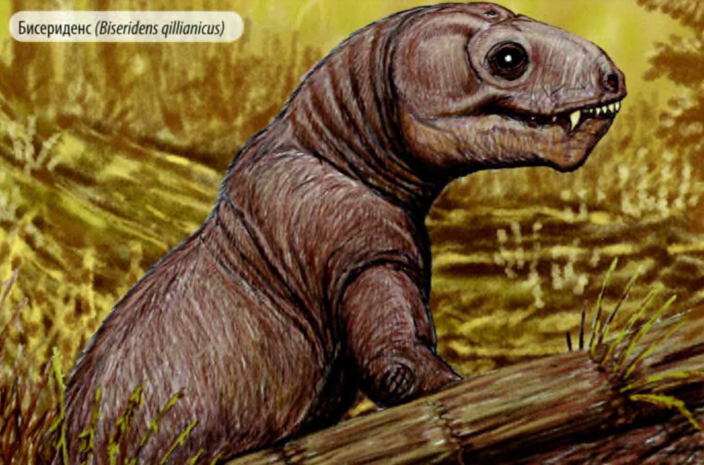 . Терапсидные рептилии ишеевской фауны в большинстве относятся к дейноцефалам («странноголовым»), названным так из-за свойственного им необычного утолщения некоторых черепных костей.