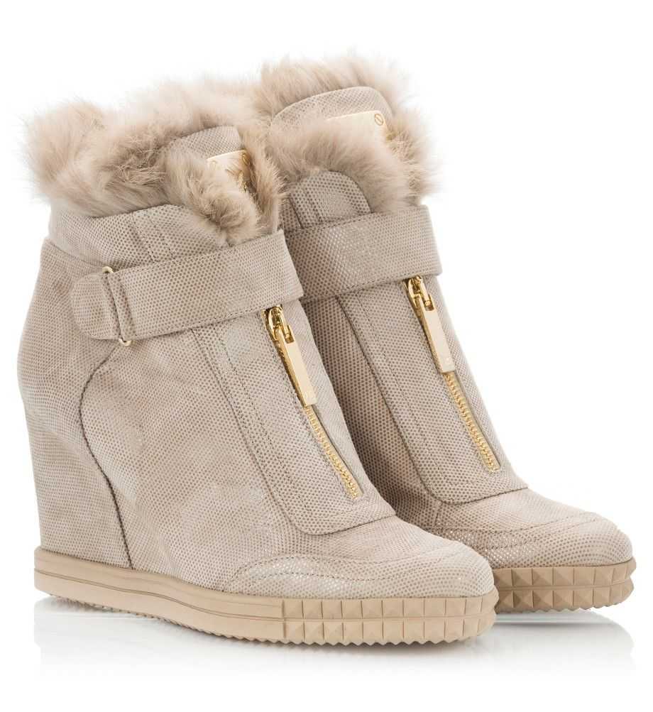 Изящные зимние сникерсы с меховой опушкой смотрятся изысканно, полностью заменяя классические ботинки.
