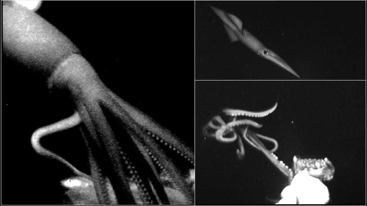 Исследователи погрузили несколько таких устройств в Большом Карибском бассейне и неоново-синий свет привлек внимание сразу нескольких гигантских кальмаров. В результате ученым удалось снять фотографии и видео этих существ на глубине от 557 до 950 метров
