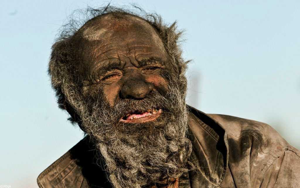 Тело немытого бездомного жителя иранских просторов покрыто толстым слоем засохшей грязи, также выглядит и его одежда. В целом кожа Хаджи напоминает толстую шкуру неотмытого в реке слона. Если лохмотья дедули уже совсем приходят в негодность, он отрывает от них негодные куски или заменяет изношенный наряд на другой, который найдет на помойке. Если на улице прилично холодает, чудак надевает на голову военный шлем, завалявшийся в земле еще со времен иранских войн.