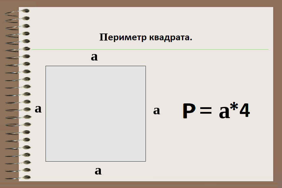 Формула периметра квадрата — периметр квадрата равен стороне умноженной на 4 -> P=4a