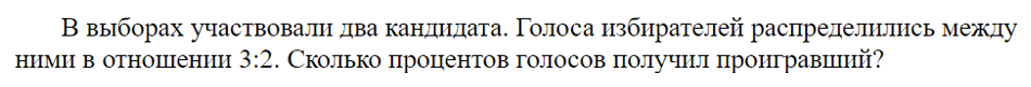 кандидата проголосовали 3 части избирателей, а за второго — 2 части.