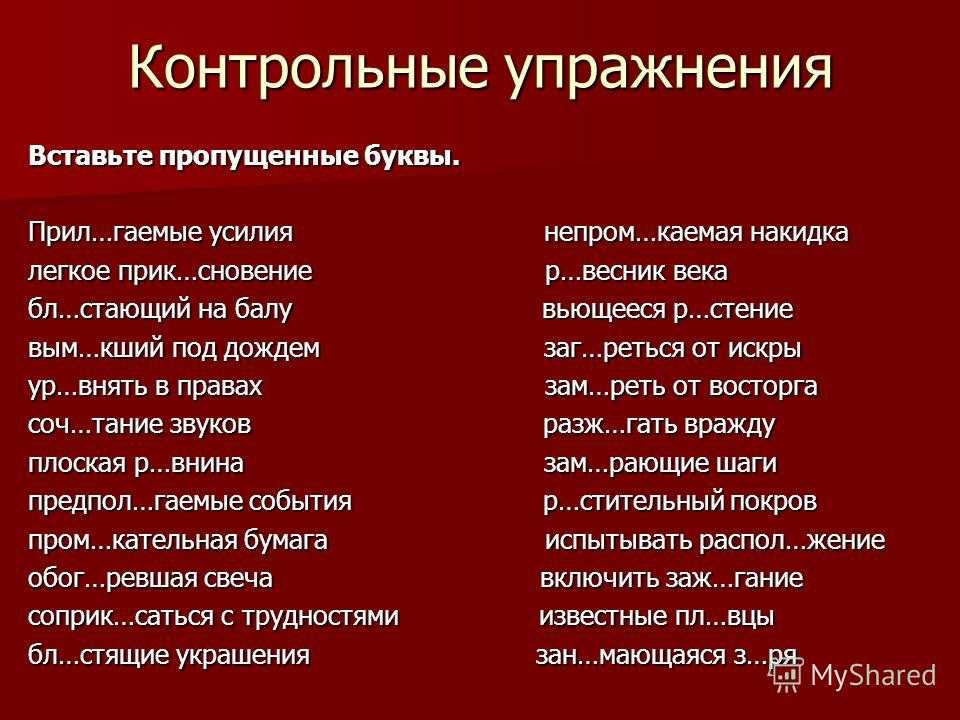 Поэтому все морфемы, относящиеся к данным типам, необходимо помнить, знать правила употребления. Лучше даже самостоятельно указывать буквы на месте пропусков, чтобы легче было ориентироваться. Если выучены все правила и слова-исключения, то задание будет выполнено верно.