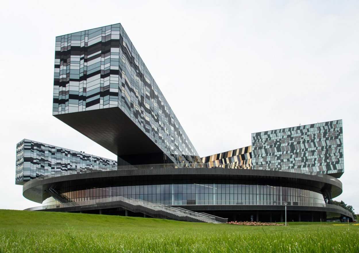 Другой жилой небоскрёб, расположенный в Мурманске, имеет длину почти 1500 метров. Развернуть такую конструкцию в одну линию невозможно. Горизонтальный небоскрёб внешне напоминает соты: контур здания изгибается и заворачивается. Во дворах причудливого дома расположены магазины, детские сады и школа.
