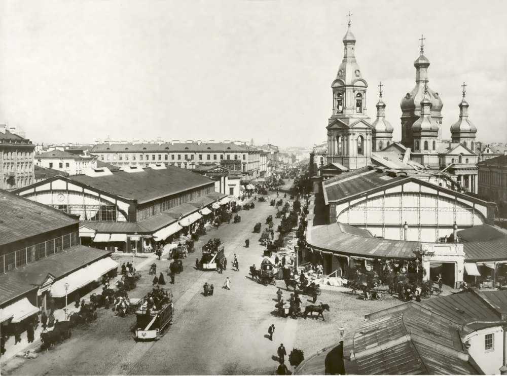 К Сенной площади выходила основная дорога, по которой купцы ехали в Санкт-Петербург — здесь они останавливались и торговали привезенными товарами. Этот продуктовый рынок был самым дешевым и многолюдным в городе, здесь покупали и продавали с развалов, с возов и телег, а крестьяне не платили за право торговли.