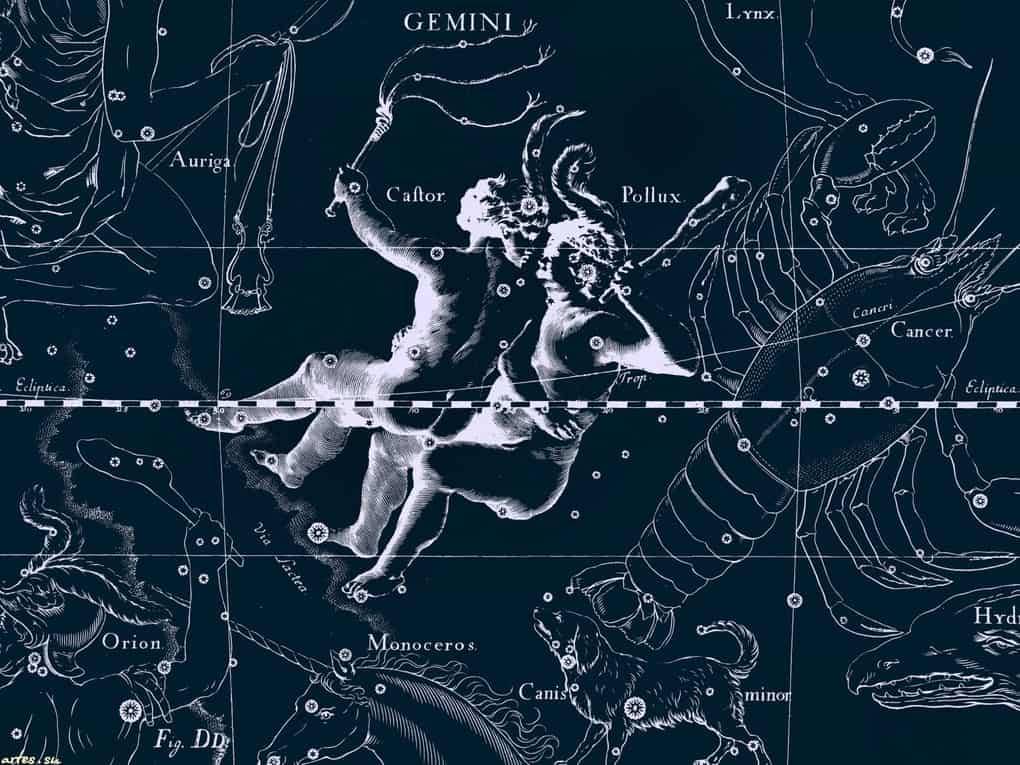 Близнецы, согласно мифу, – это братья Диоскуры, Кастор и Поллукс (Полидевк). Да, они действительно были близнецами (то есть родились один за другим), но при этом Кастор приходился сыном спартанскому царю Тиндарею, а Поллукс – Зевсу-Громовержцу (их мать Леда тоже не смогла устоять перед божественным обаянием).