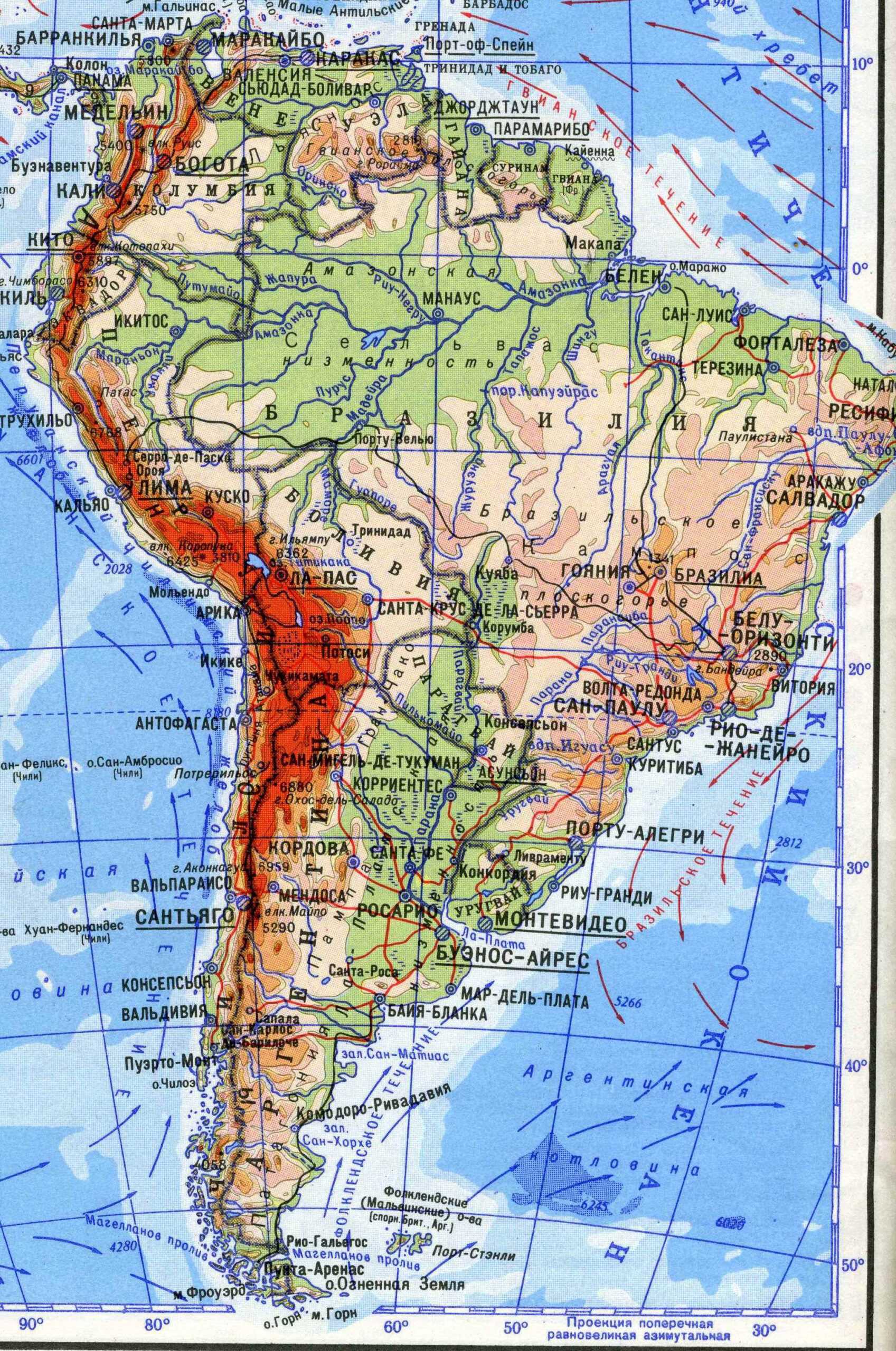 Вдоль западного побережья Южной Америки почти на 5 000 км тянется Перуанский желоб, к которому приурочены эпицентры современных землетрясений. Они провоцируют появление гигантских волн-цунами, которые пересекают тихоокеанский бассейн с востока на запад. Средняя высота на материке составляет 580 метров над уровнем моря.