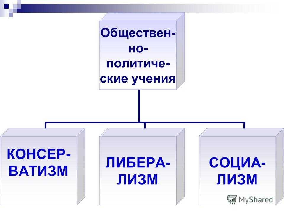 Обществен- но-политиче- ские учения КОНСЕР- ВАТИЗМ ЛИБЕРА- ЛИЗМ СОЦИА-ЛИЗМ