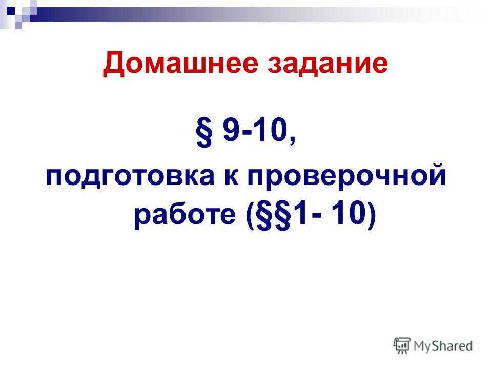 Домашнее задание § 9-10, подготовка к проверочной работе ( §§1- 10 )