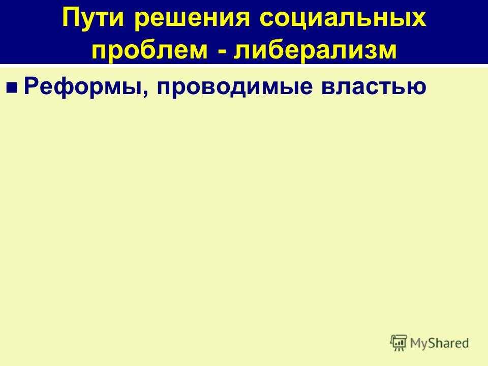 Пути решения социальных проблем — либерализм Реформы, проводимые властью