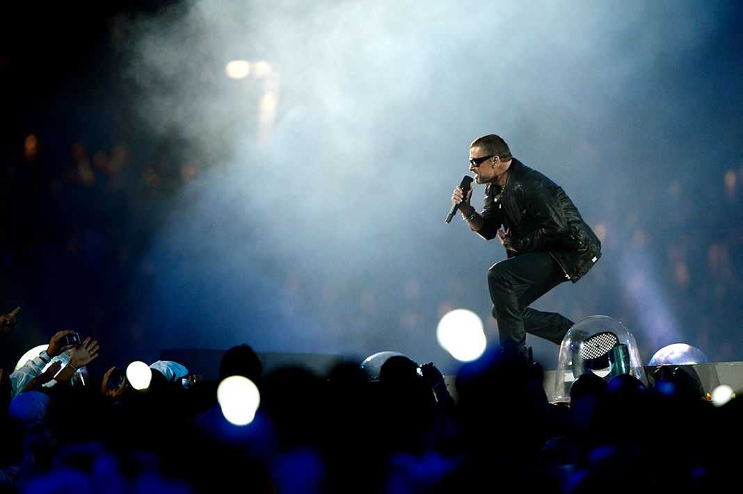 Джордж Майкл выступает на церемонии закрытия 16-го дня Олимпийских игр 2012, 12 августа 2012 года в Лондоне.
