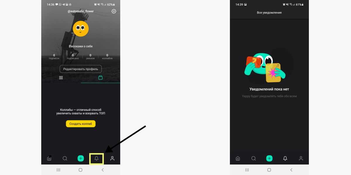 Раздел уведомлений покажет вам все реакции, которые будут вам отправлять пользователи или система: комментарии, лайки, подписки – все здесь. Чтобы посмотреть, нажмите на колокольчик.
