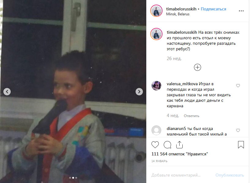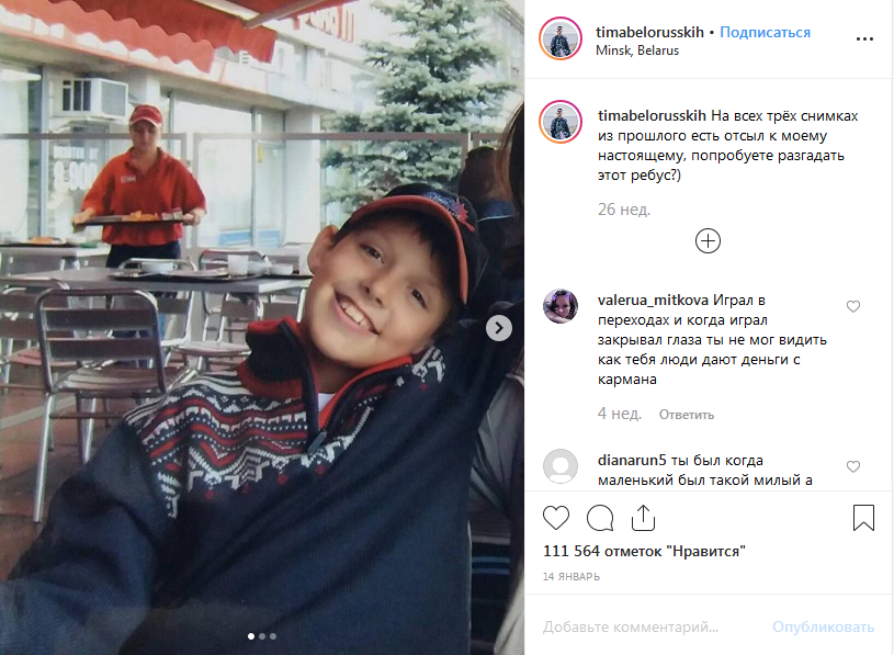 Тима Белорусских в детстве. Фото https://www.instagram.com/timabelorusskih/