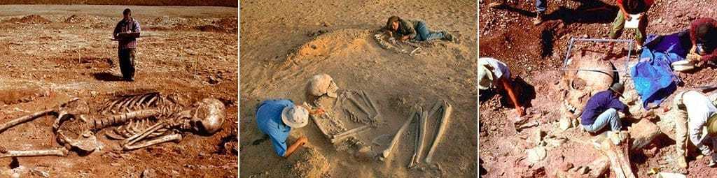 На останки людей-гигантов древности случайно наткнулись и старатели, мывшие золото в пустынном районе Невады. Местность была холмистой – под одним из уступов рабочий заметил торчащую кость. Золотоискатели поднялись на холм и замерли от шока, когда увидели кости стопы и голени, частично замурованные в камень.