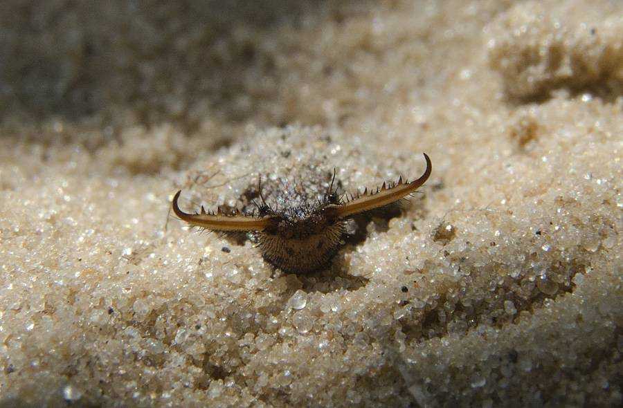 В природе существует примерно два десятка различных видов муравьиных львов, большая часть личинок которых просто-напросто живет в песке и охотится там на мелких насекомых: муравьев, пауков и т.д. Сегодня речь пойдет о двух самых интересных видах муравьиного льва — M. formicarius и M. formicalynx. Особенностью этих двух видов является их необычный подход к поимке добычи. Им недостаточно просто обитать в песке на поверхности, поэтому они закапываются в него, а затем выбрасывают песок движениями своей головы до тех пор, пока в песке не образуется воронка. Если на краях воронки будет присутствовать крупный мусор, который личинка не может выбросить головой, то она вынесет его на своей шероховатой спине. В итоге у личинки муравьиного льва получается идеальная воронка в песке, после чего она зарывается в её центр, выставив наружу только челюсти.