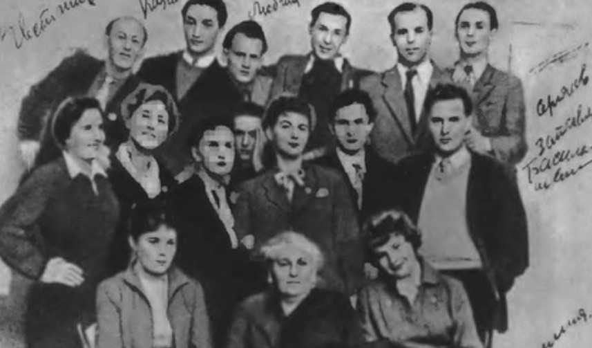 Татьяна Доронина с преподавателем и однокурсниками. Школа-студия МХАТ