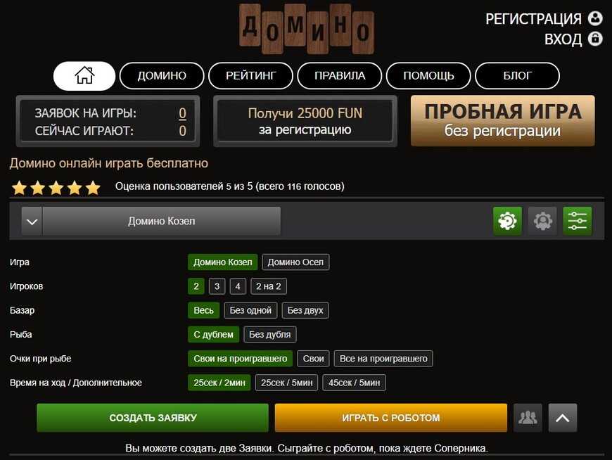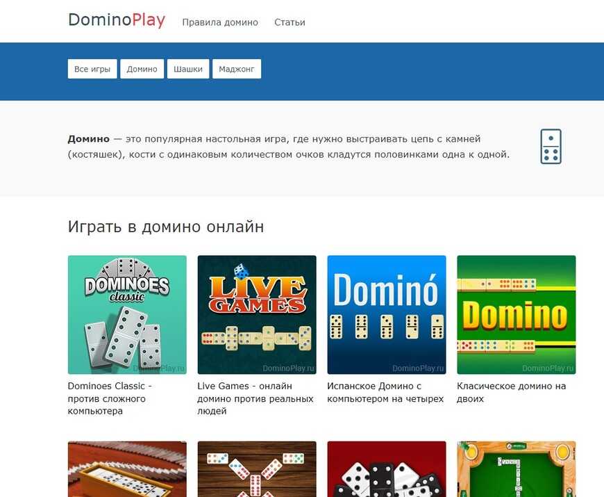 Удобный сервис для новичков и мастеров. Есть несколько вариантов домино на выбор