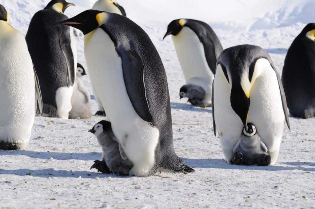 Отцы императорских пингвинов тщательно согревают и оберегают сначала яйца, а после вылупления — и маленьких пингвиненков.