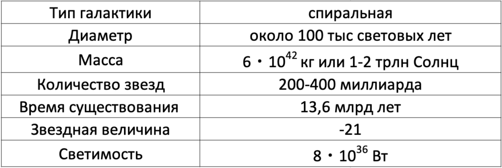 Диаметр диска составляет 100 тыс световых лет – это и есть основная часть галактики, которую мы видим на звездном небе.