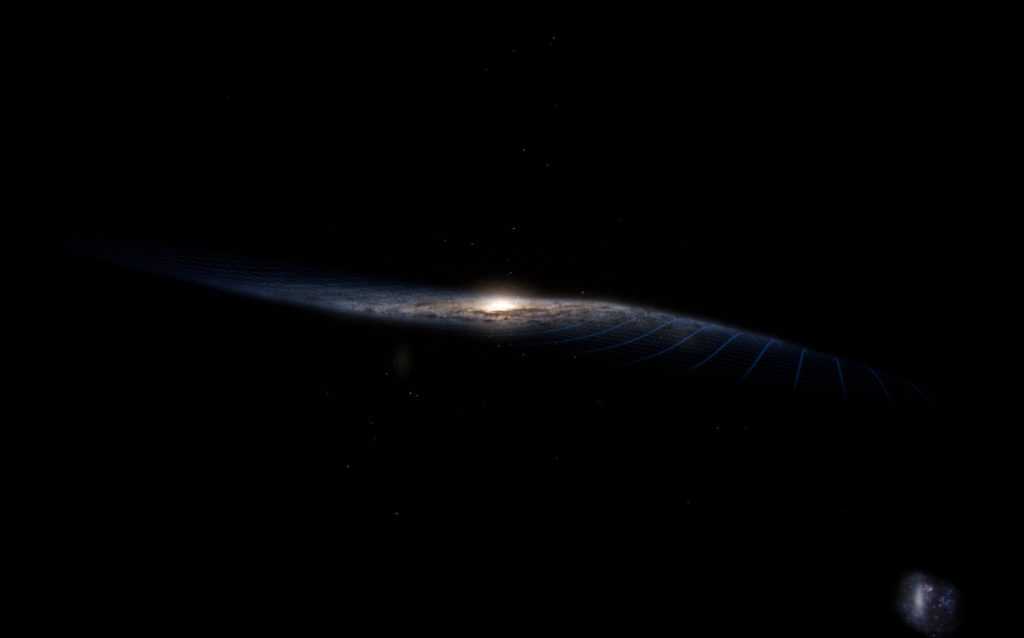 Форма диска немного искривлена, относительно плоскости, что показывает на взаимодействие Млечного пути с другими галактиками.