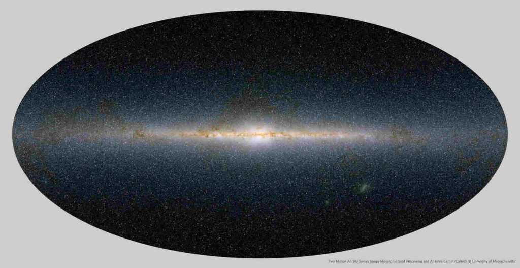 И мы, так как находимся на периферии, и видим эти самые облака пыли, которые закрывают нам яркий центр Млечного пути. Но даже не смотря на пыль, что закрывает нам красивейшее зрелище ядра Галактики в видимом диапазоне, ученым удалось его увидеть в инфракрасном.