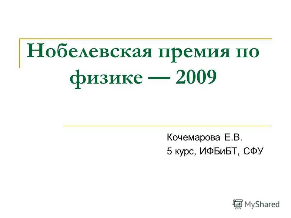 Презентация на тему: » Нобелевская премия по физике 2009 Кочемарова Е.В. 5 курс, ИФБиБТ, СФУ.» — Транскрипт:
