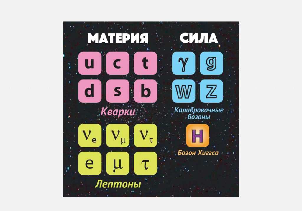Все частицы Стандартной модели, собранные в подобие системы Менделеева. Справа — бозоны, слева — фермионы