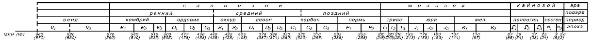 Можно предположить, что периоды этих эр палеозоя и мезозоя соотносятся следующим образом:
