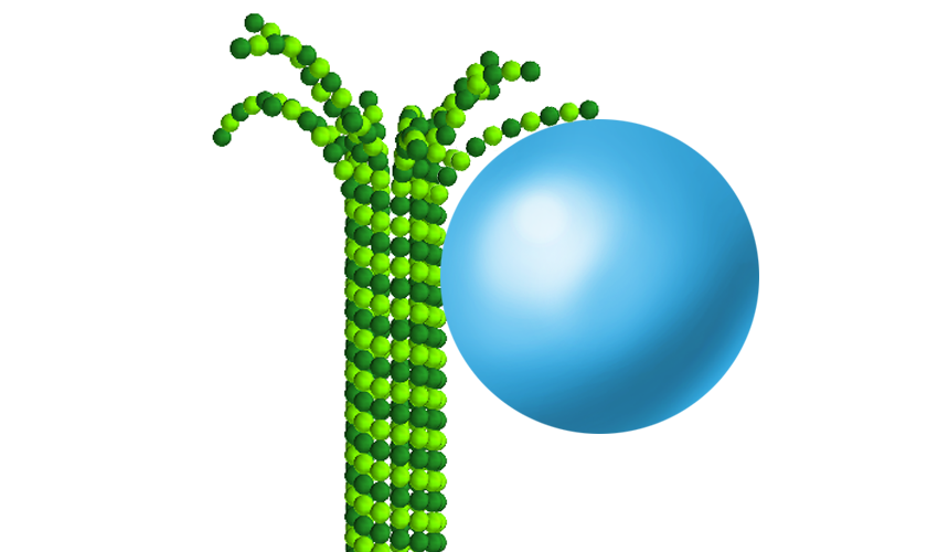 Моделирование разбирающейся микротрубочки с закрепленным на ее поверхности стеклянным шариком