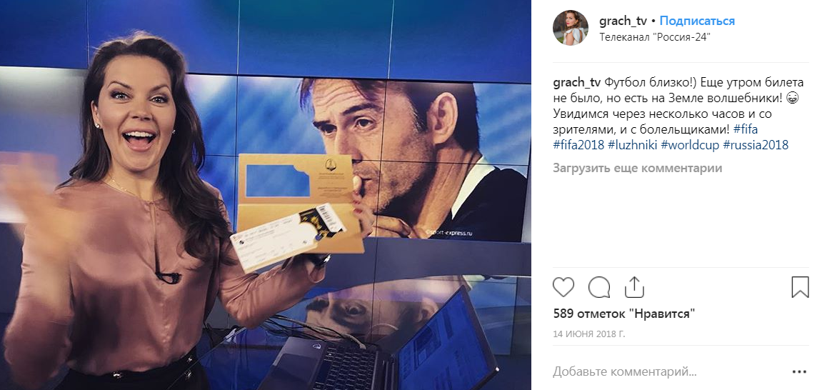 - Телеведущая канала «Россия 24» увлекается театром. В ее инстаграме весьма много фотографий за кулисами театра, с различными актерами.
