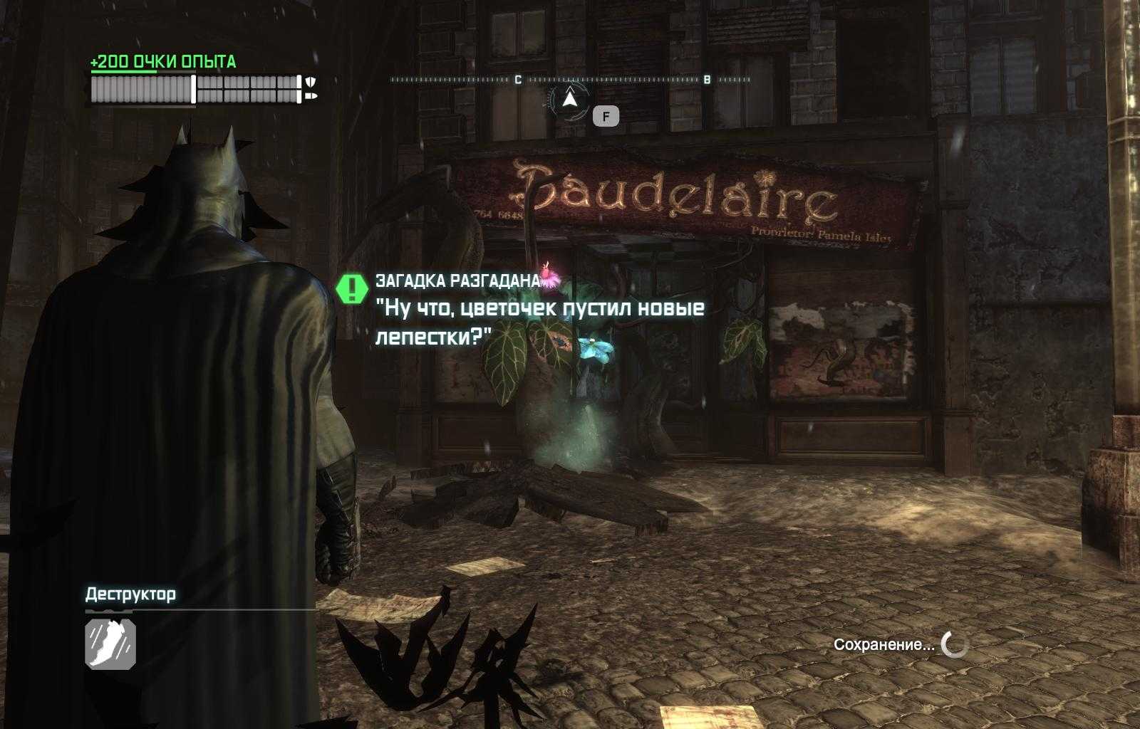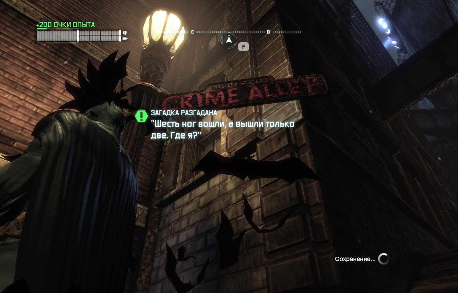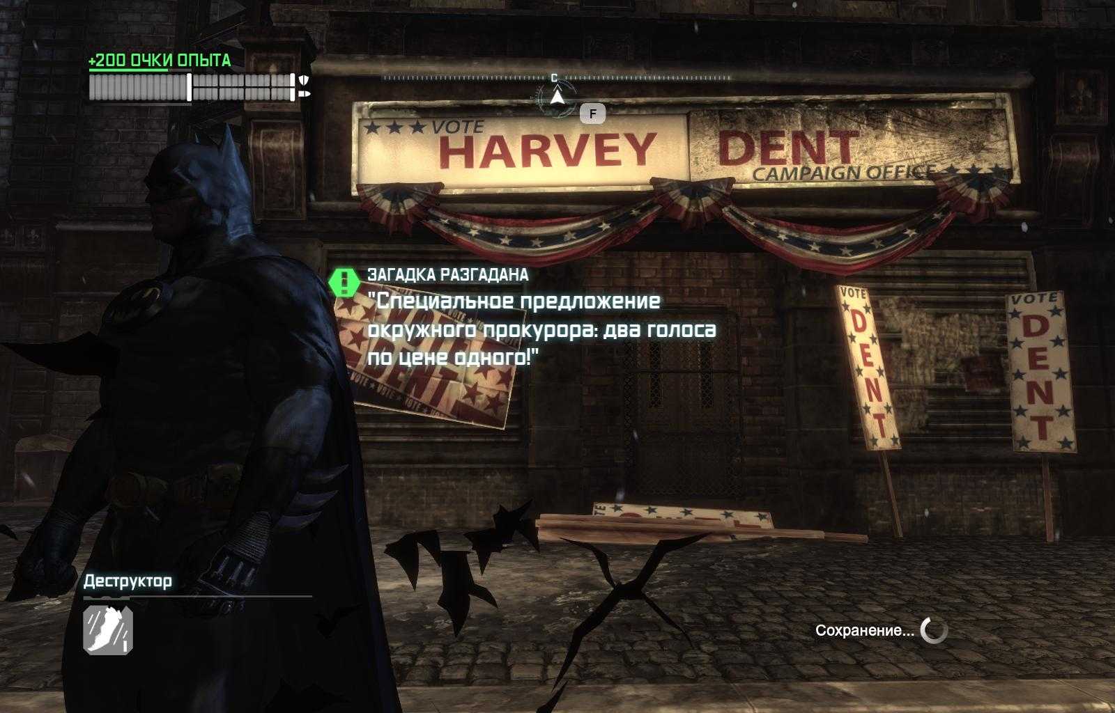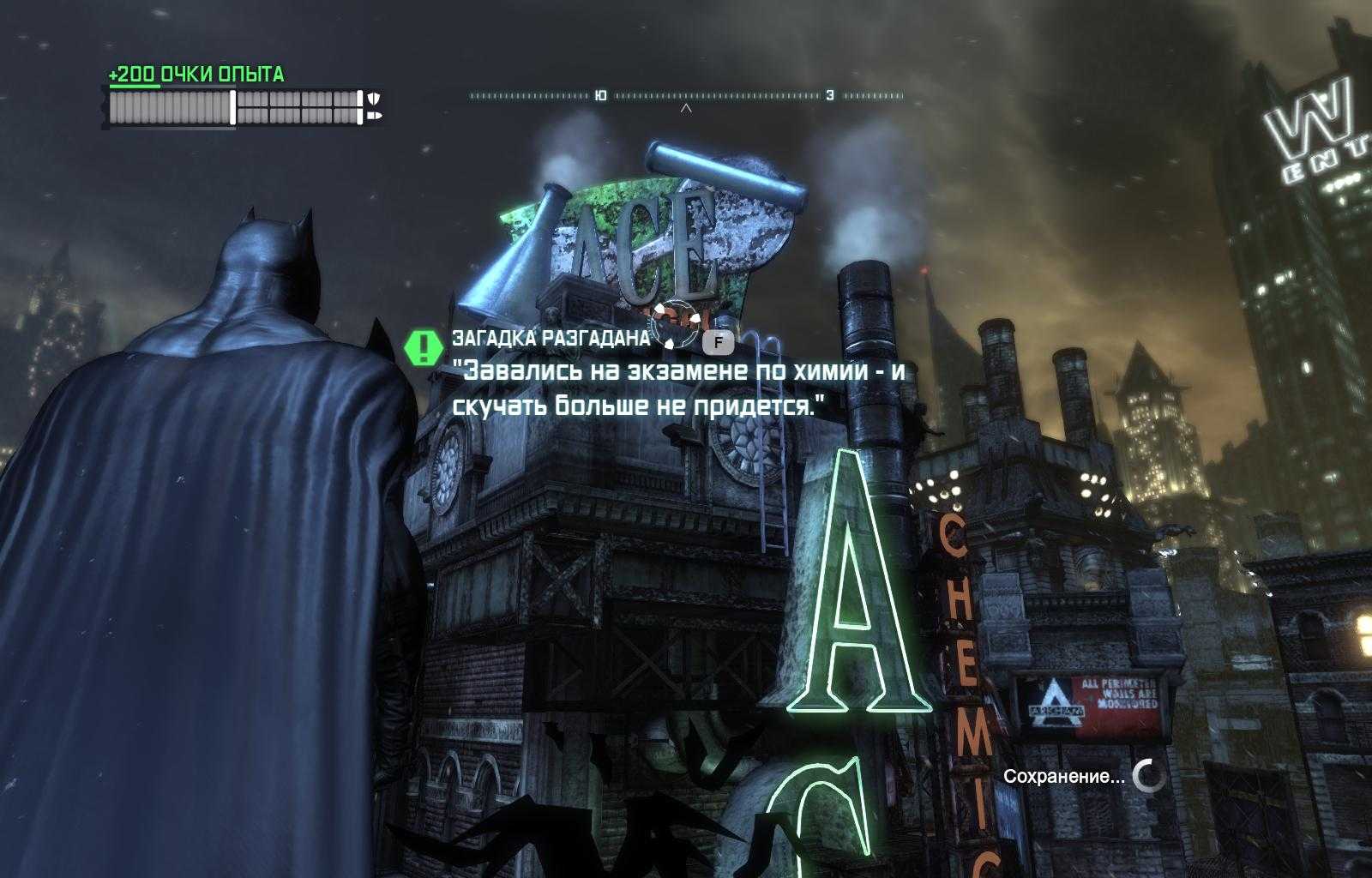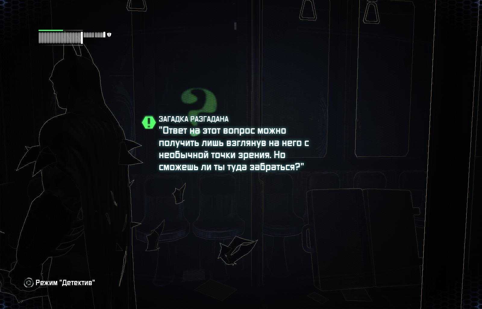 Так мы отбавили боссу треть жизни. Осталось повторить то же самое два раза, и Загадочник будет побеждён. После победы отвозим Нигму в полицейское управление.