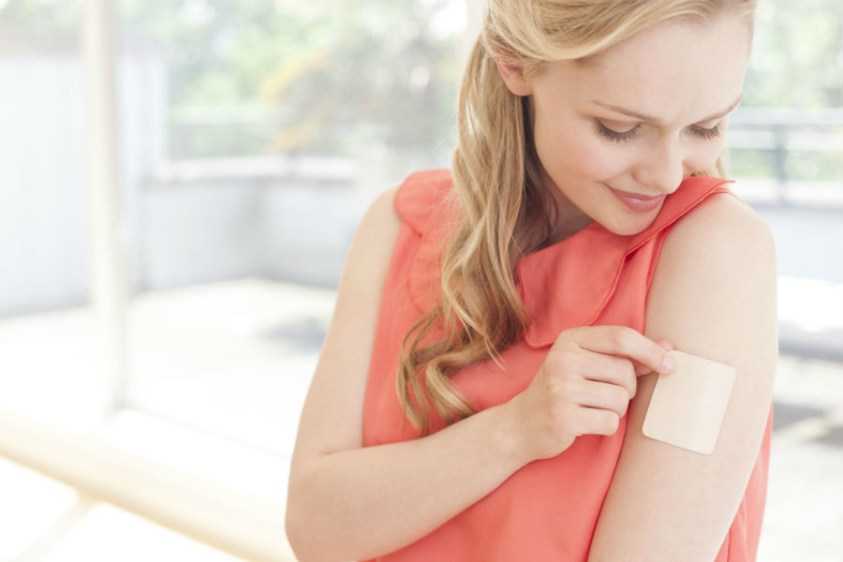 Гормональный пластырь – новинка из разработок в данной области. Он представляет собой прямоугольник размером около 4х5 см, активными веществами которого являются искусственные аналоги женских гормонов. Он клеится в области ягодиц, плеча, поясницы или на животе. Через кожу вещества всасываются в организм и препятствуют наступлению беременности. Пластырь используют по схеме: 21 день – 7 дней перерыв – 21 день – 7 дней перерыв и т.д. В противном случае эффективность препарата будет снижаться. При этом менять пластырь нужно каждую неделю.