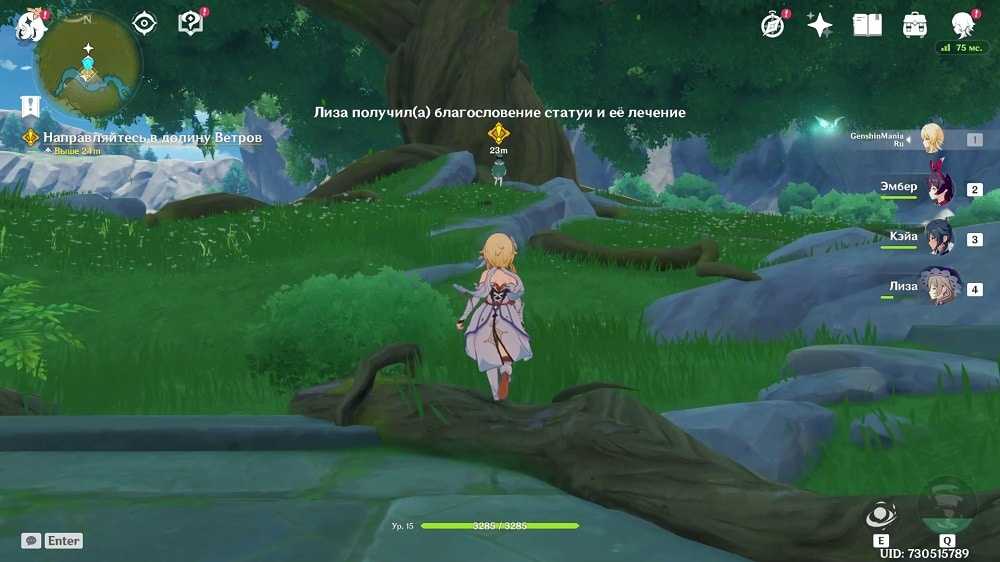 После того как вы заметили мальчика в зеленой одежде, необходимо поговорить с Паймон и обсудить план действий. Когда вы готовы к преследованию, используйте клавишу «кнопка на колёсике мыши», которая позволяет увидеть следы благодаря Чувству стихий. Как только вы обнаружите следы, следуйте за ними.