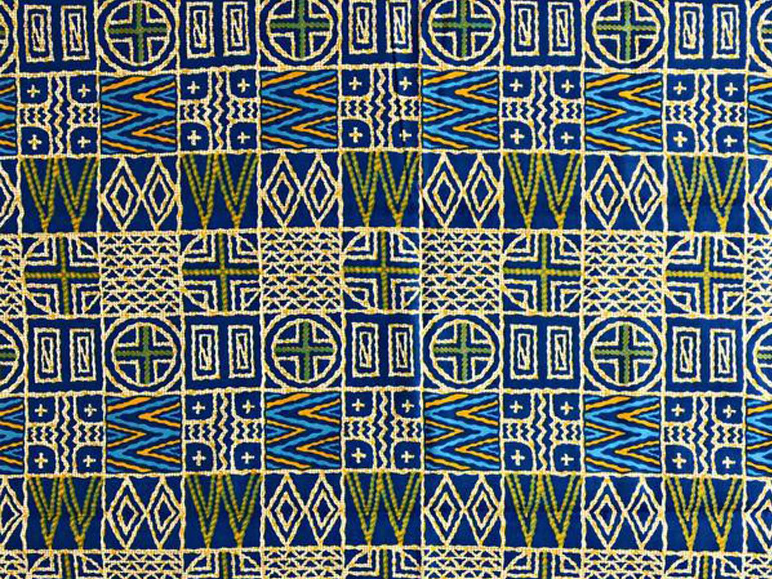 Национальный текстильный паттерн, названный в честь деревни на юге Нигерии. Местные мастера придумывают новые вариации аквете и могут вкладывать в них собственные значения. Считается, что люди, овладевшие ручной техникой создания этого текстиля, наделены талантом от Бога, поэтому аквете символизирует божественное начало в человеке.