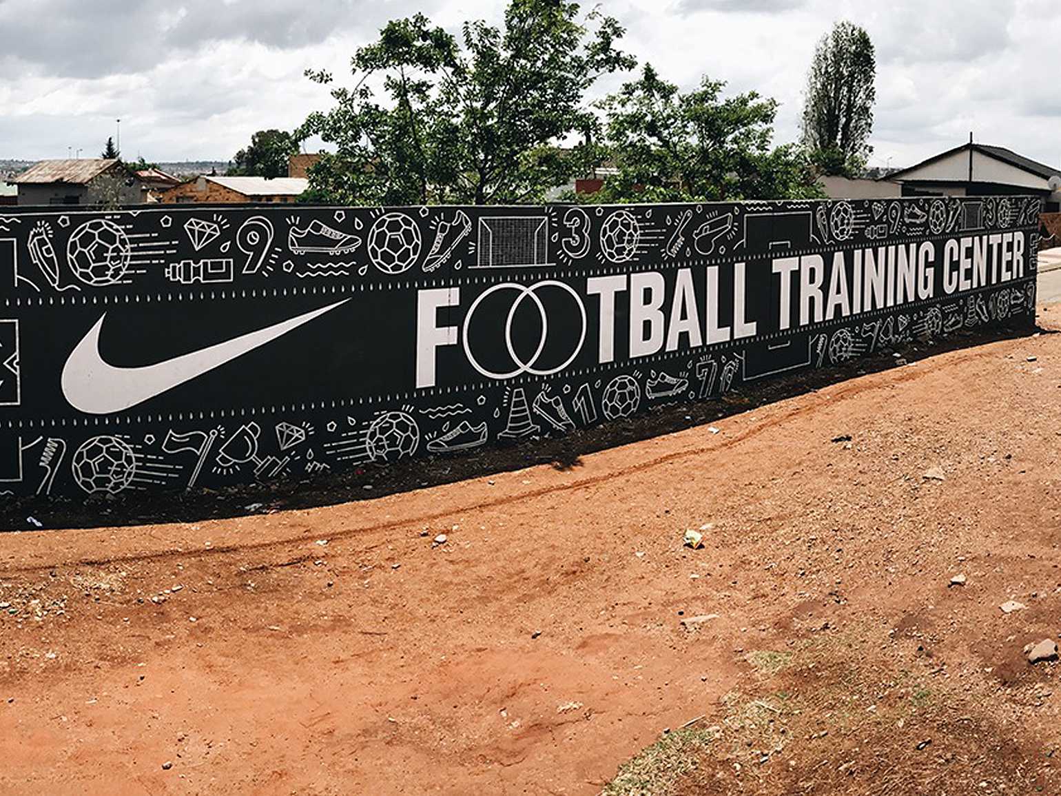 Мурал с использованием паттерна ндебеле на ограждении футбольного центра Nike в Йоханнесбурге. Фото: Nike / Karabo Poppy Moletsane