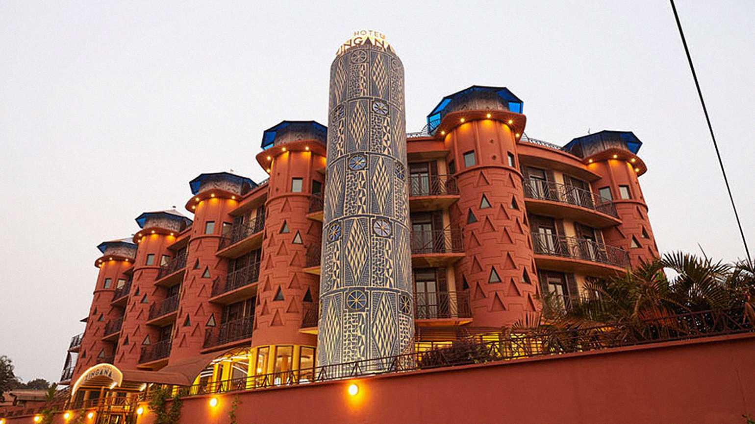 В Камеруне построили отель в стиле племён Бамилеке, чтобы погрузить гостей в культуру народа Центральной Африки. Паттерн использовали для оформления сайта, фасада и комнат.